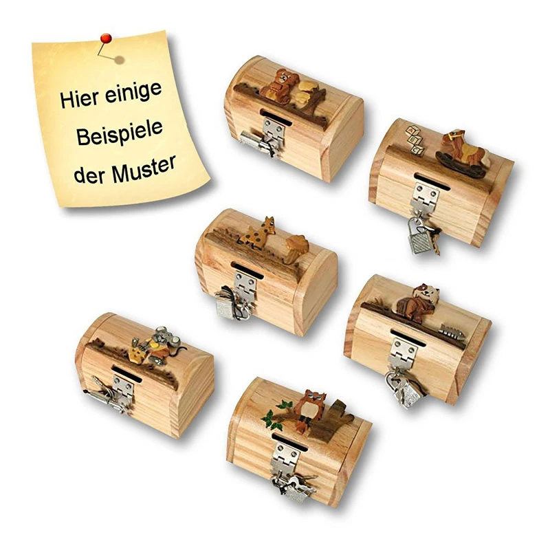 Bartl 7623 Holz-Spardose „Schatztruhe mit Tiermotiv“ mit Schloß