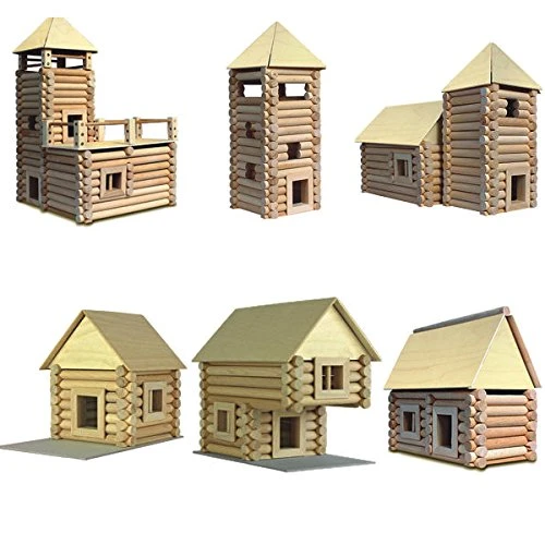 Zusammensetzbarer Baukasten VARIO Wie der Name schon verrät, kann man aus dem Inhalt des Baukastens VARIO mehrere Varianten verschiedener Bauwerke zusammensetzen. Man kann sie zusammenbauen und dann wieder zerlegen. Den kleinen Bauherren helfen wir mit Bildvorlagen verschiedener Bauwerke auf der Verpackung, es gibt aber viele andere Möglichkeiten nach eigenen Vorstellungen und Ideen. Jeder Bausatz beinhaltet Buchen-Rundhölzer mit dem Durchmesser 15 mm und in verschiedenen Längen. Mit Hilfe von Ausfräsungen an beiden Enden des Balkens kann man Bauwerke nach eigenen Vorstellungen zusammenfügen, ähnlich der Blockhaus- Bauweise. Die Dachschrägen werden einfach mit Hilfe von Klettverschlüssen zusammen verbunden. Auch die Fenster und Türen sind aus massivem Buchenholz (selbstverständlich ohne schädliche Substanzen) hergestellt. Alles ist in einem hochwertigen Karton mit Deckel verpackt, welcher eine lange Lebensdauer garantiert.